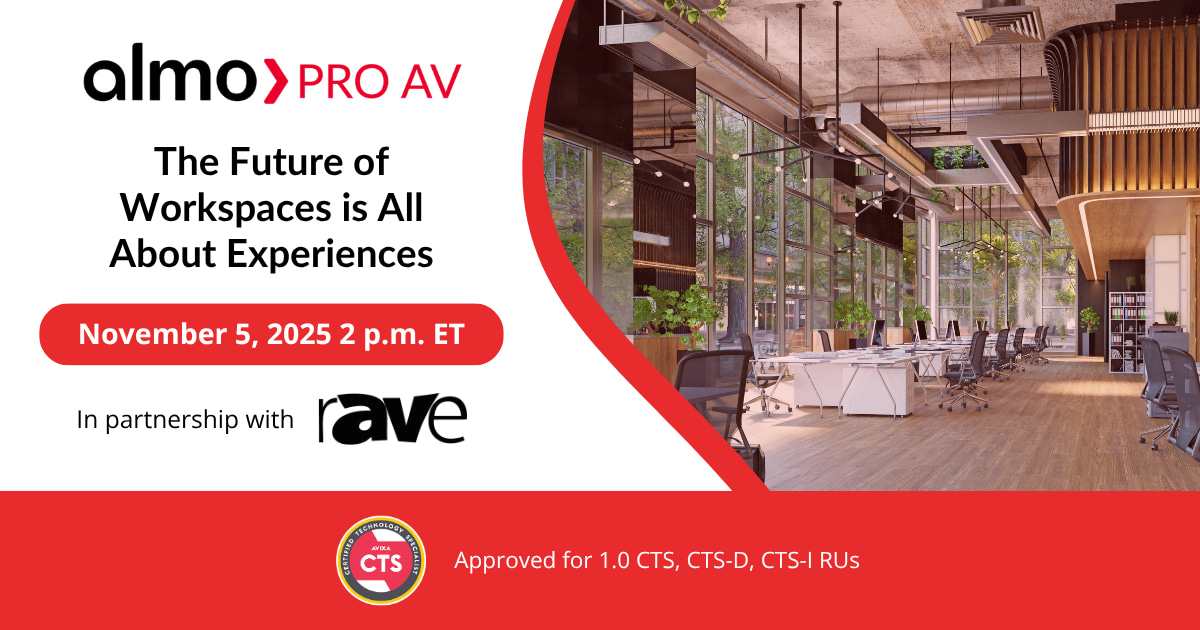 11.05.25 | WEBINAR Approved for 1.0 CTS, CTS-D, CTS-I RUs | It’s clear workspaces are now different since we’ve started to return to normal - learn the winning AV trend that combines emerging technology, design thinking and experiences for co-working, remote and in-person workers.