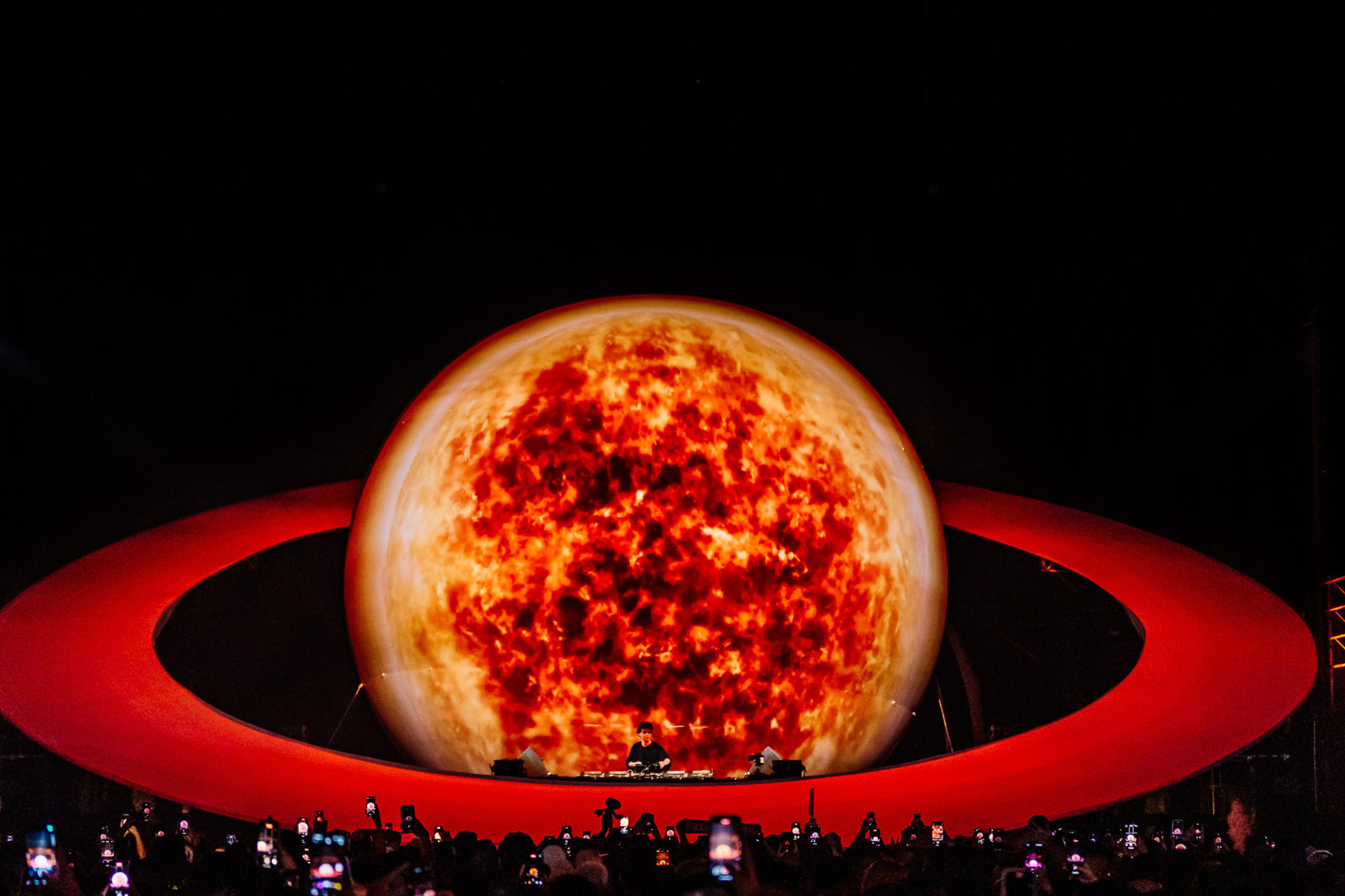 Otro evento que se benefició de la visión creativa de On Projeções fue Illusionize in Saturn, una fiesta de música electrónica liderada por el DJ y productor brasileño Pedro Mendes, conocido artísticamente como Illusionize. Este evento, realizado en el icónico recinto ARCA de São Paulo, solicitó una representación visual única: la proyección del planeta Saturno y sus anillos sobre la ubicación del DJ.
