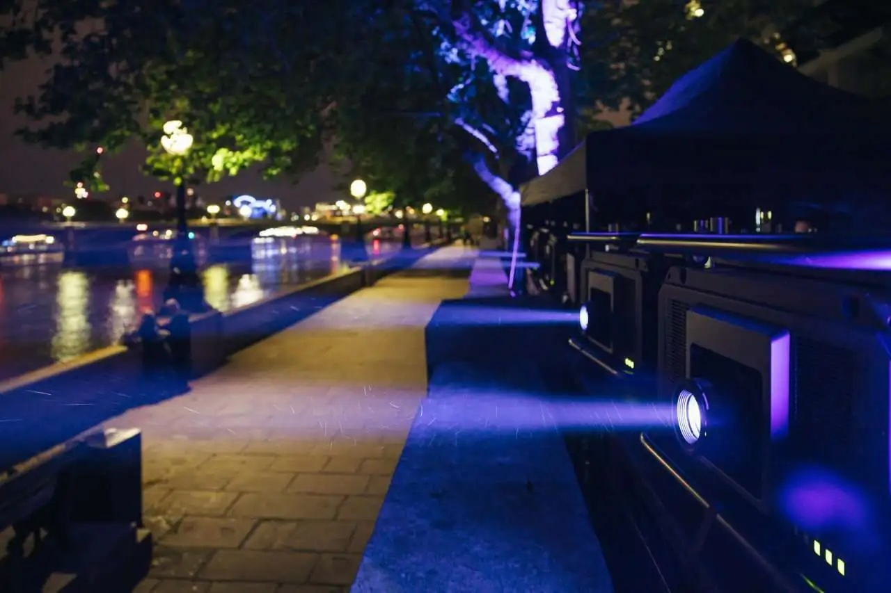 Escolher o projetor adequado e alinhá-lo corretamente são fatores decisivos para a qualidade de um show de mapping. Os projetores devem cobrir toda a superfície com a intensidade e resolução necessárias.