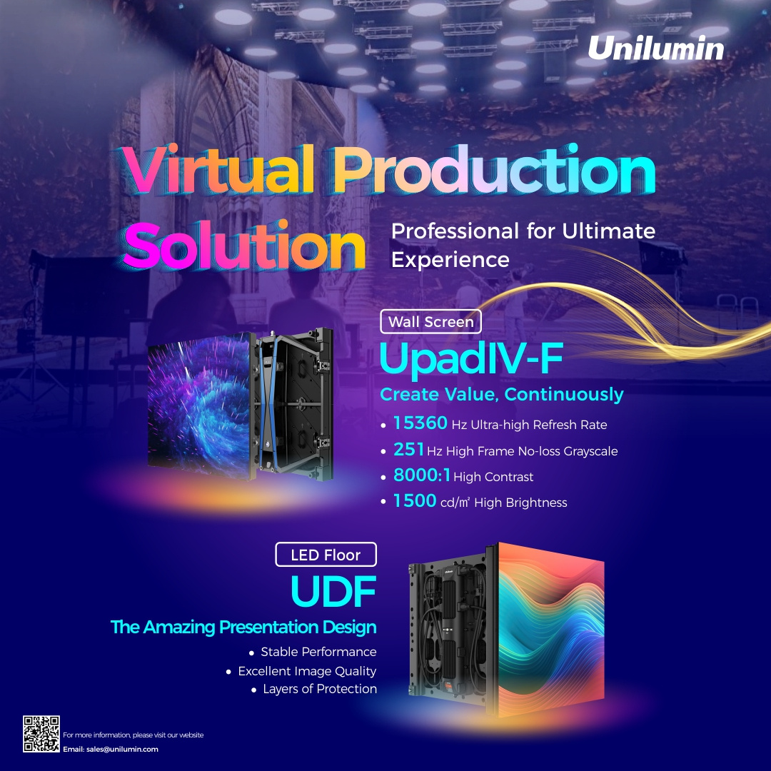 Check out Unilumin's virtual production stage with a stunning LED background of UpadIV-F and a well-arranged LED floor of UDF.