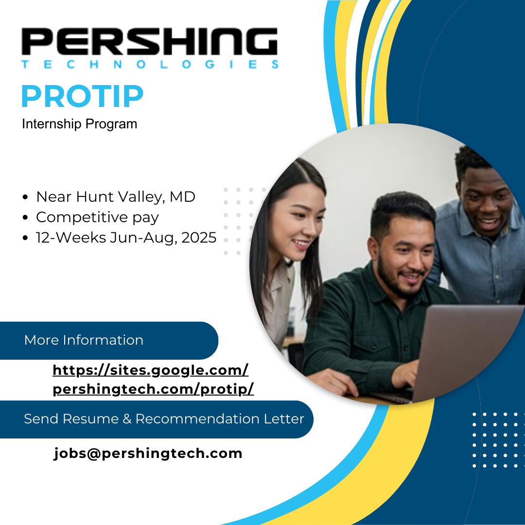 📧 Send your resume and professional recommendation letter by a professor or industry professional (required) to jobs@pershingtech.com