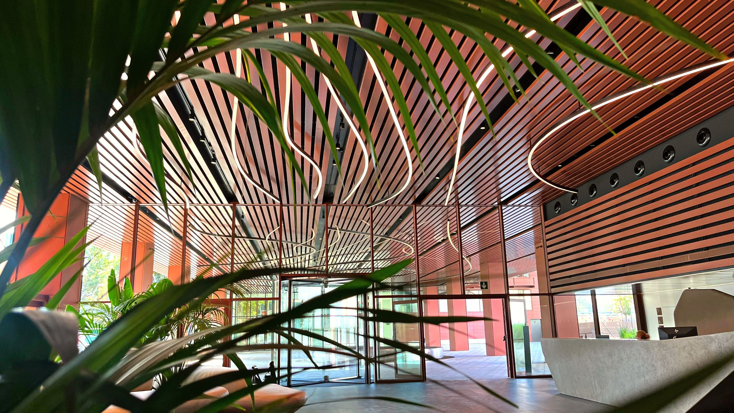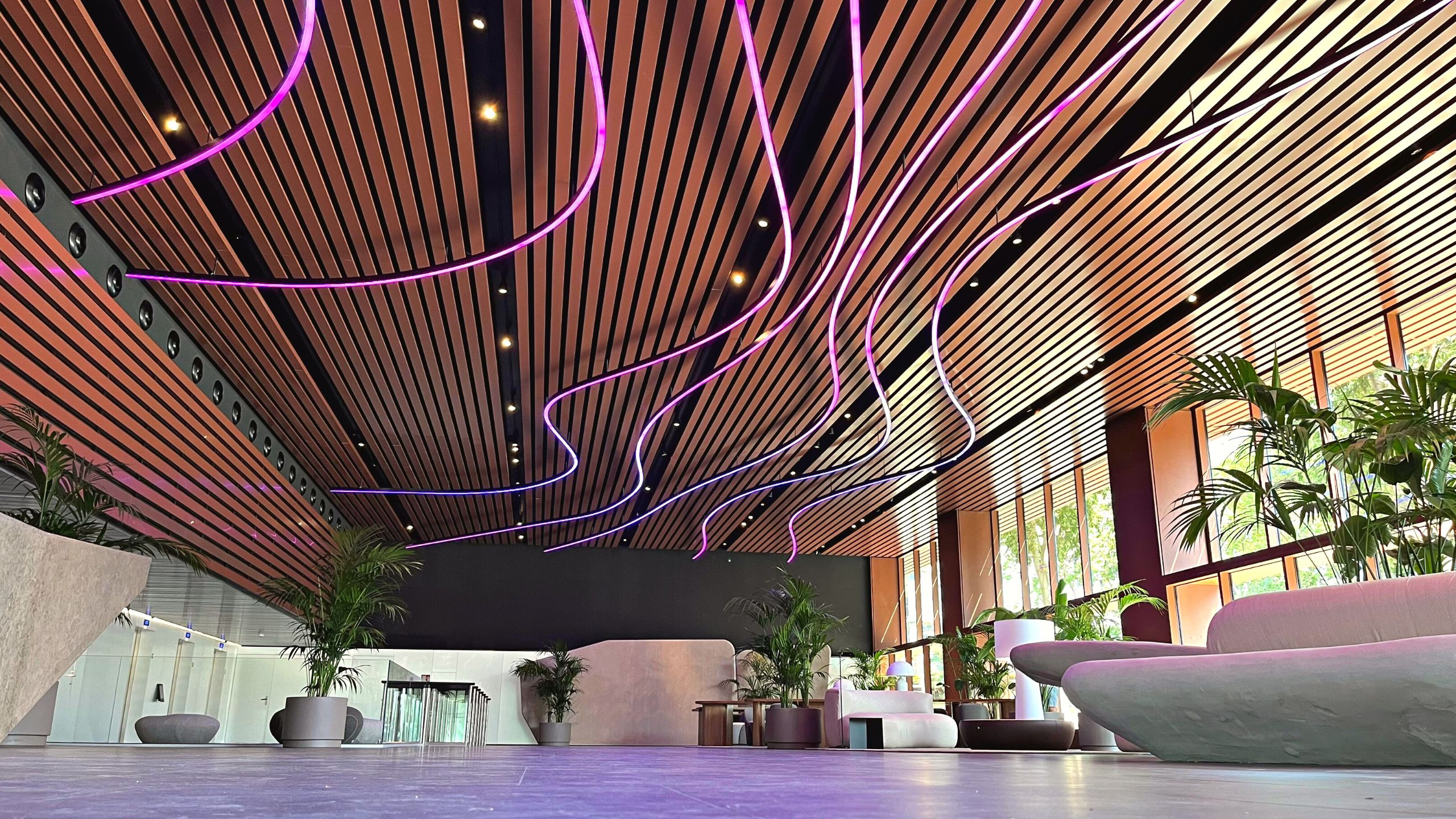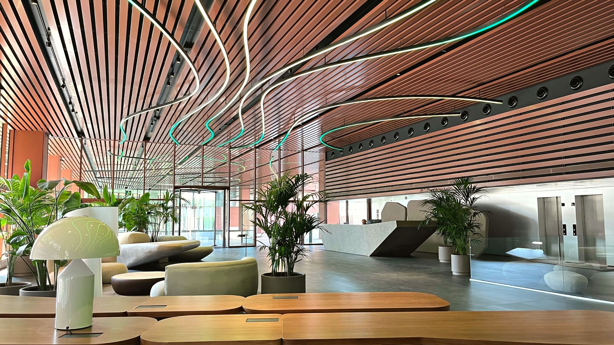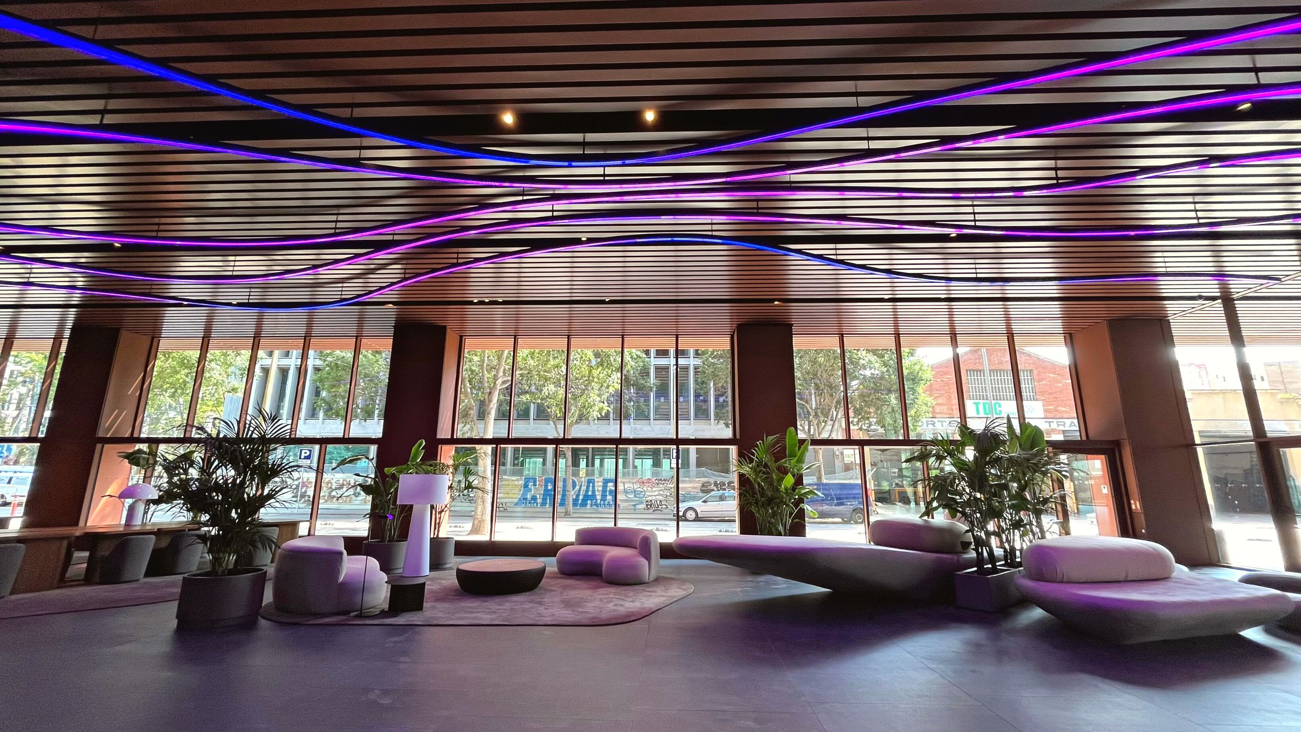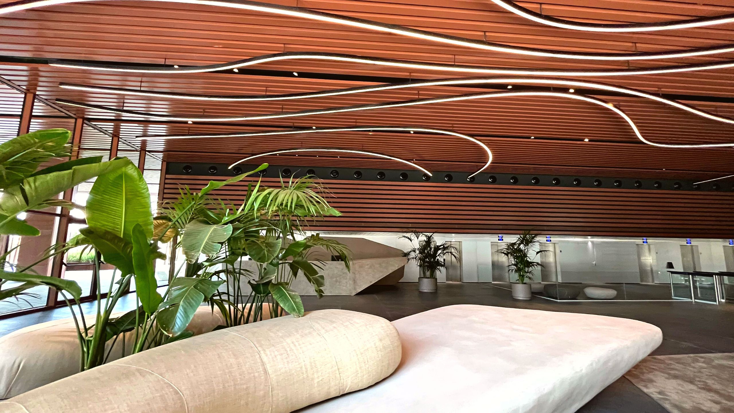 We turned the lobby of the new Álaba 111 building in Barcelona into a luminous oasis spanning over 350 meters of digital lighting