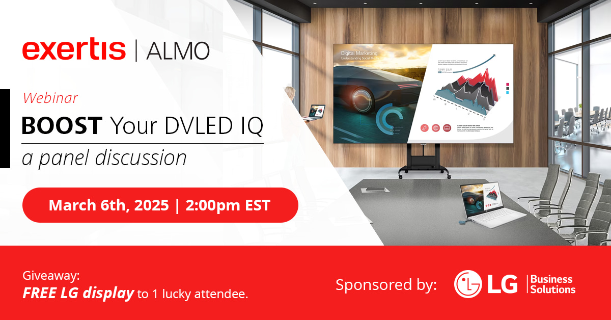 *Terms: Promotion is open to US-based customers of Exertis Almo whose accounts are in good standing. Winner will be drawn from all qualifying attendees. All state and federal taxes are the responsibility of the winner.