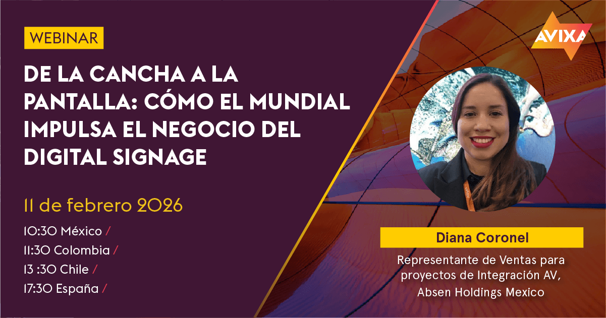 Durante este webinar, Diana Coronel, Representante de Ventas para Proyectos de Integración AV de Absen Holdings México, aborda cómo el Mundial impulsa la adopción de estas tecnologías y qué implica realmente diseñar soluciones para entornos de alta exigencia como estadios, fan zones, espacios públicos o venues híbridos.