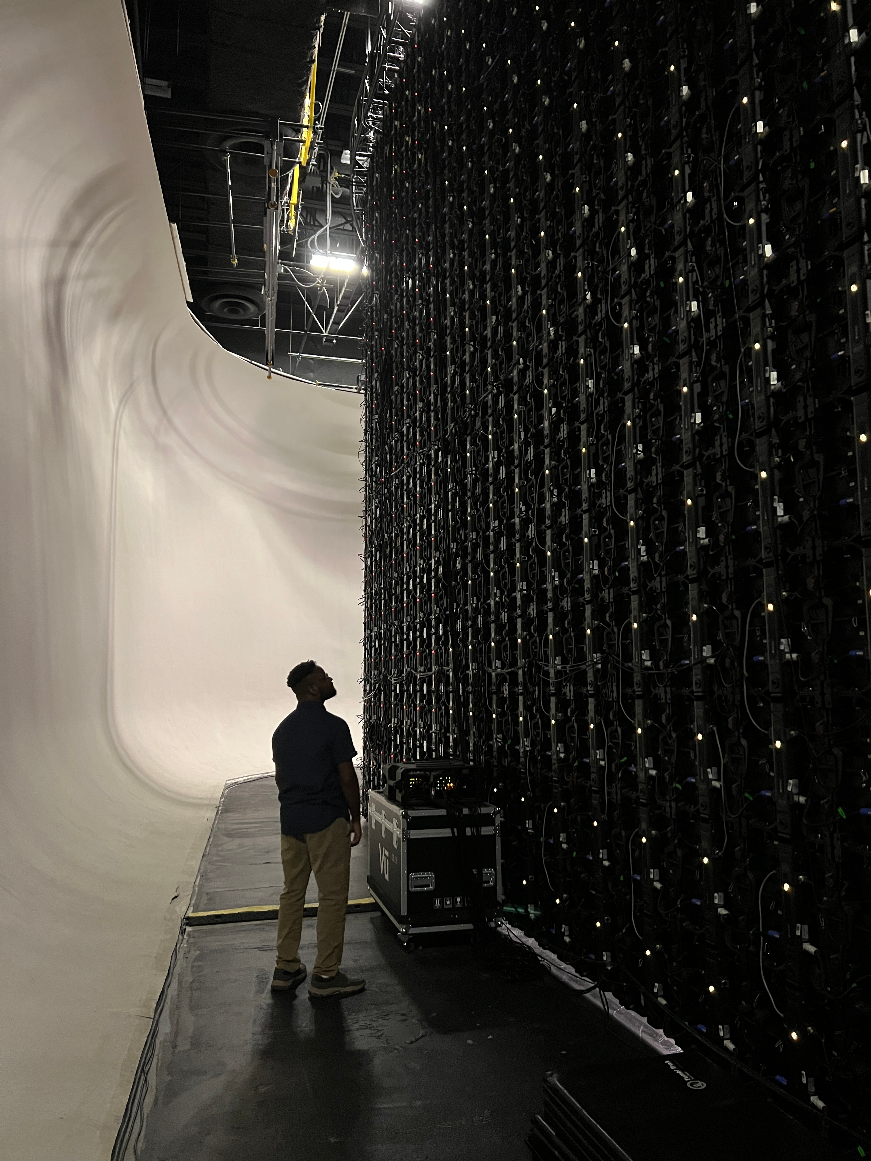 Virtual production combines physical and virtual filmmaking techniques to create cutting-edge media. How it works: teams use real-time 3D engines (game engines) to create photorealistic sets, then display them on large LED walls behind physical sets using the real-time rendering capabilities of the game engines. The cameras are synced with the game engines for enhanced realism and depth of perspective.*