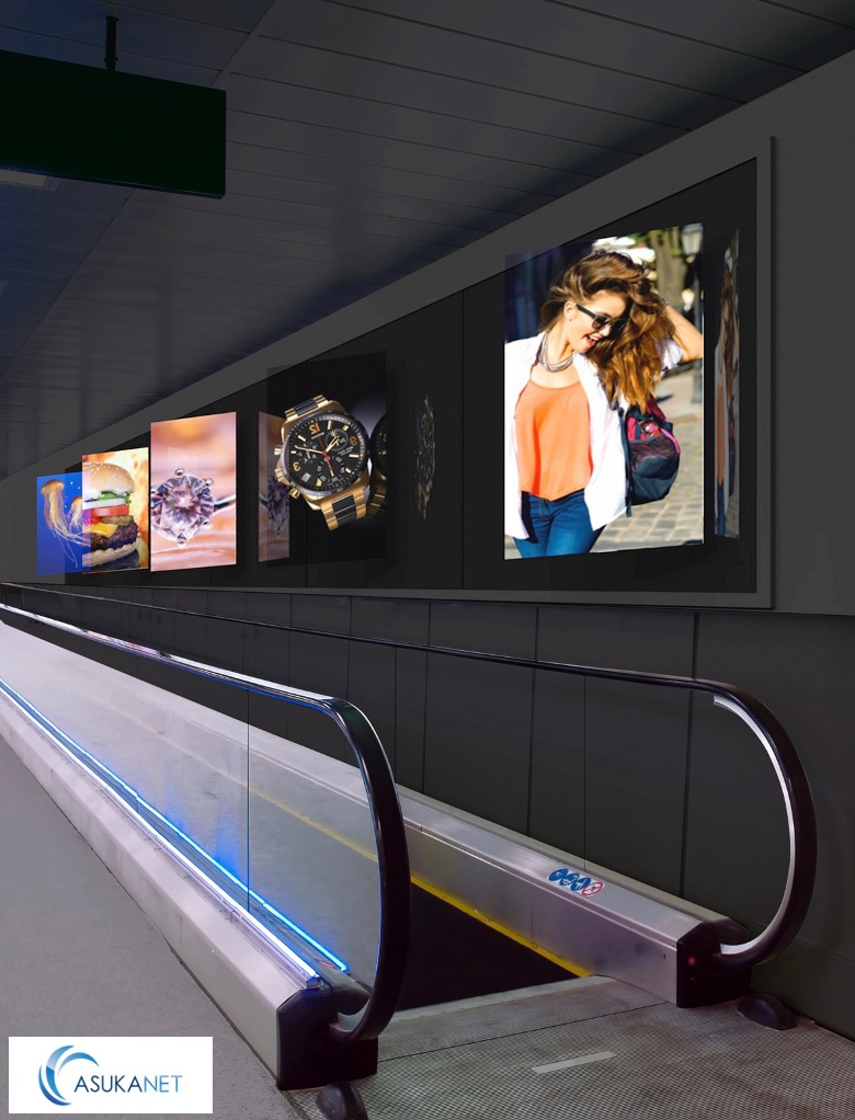 Placing holographic displays right next to moving walkways ensures that every passerby sees the content without distraction.