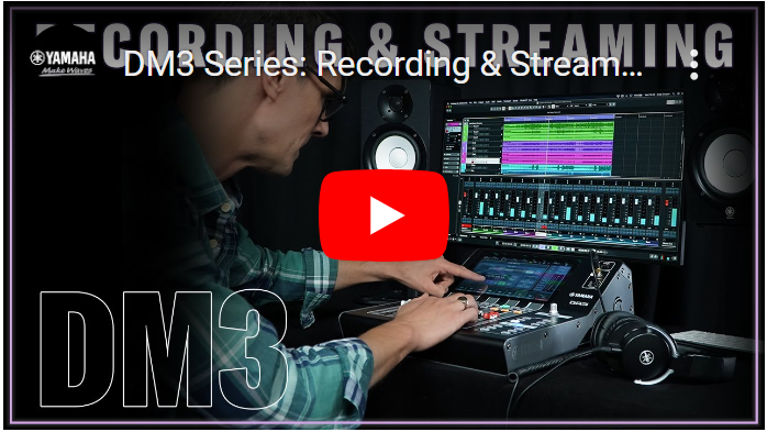 There's probably no better multi-purpose compact digital mixing console than Yamaha DM3 series. See how to use it for the two specific applications of recording and live-streaming. Make use of its USB ports for multi-track recording, for a computer audio interface, and use its faders and buttons for software DAW control. You can find out more about DM3 series.